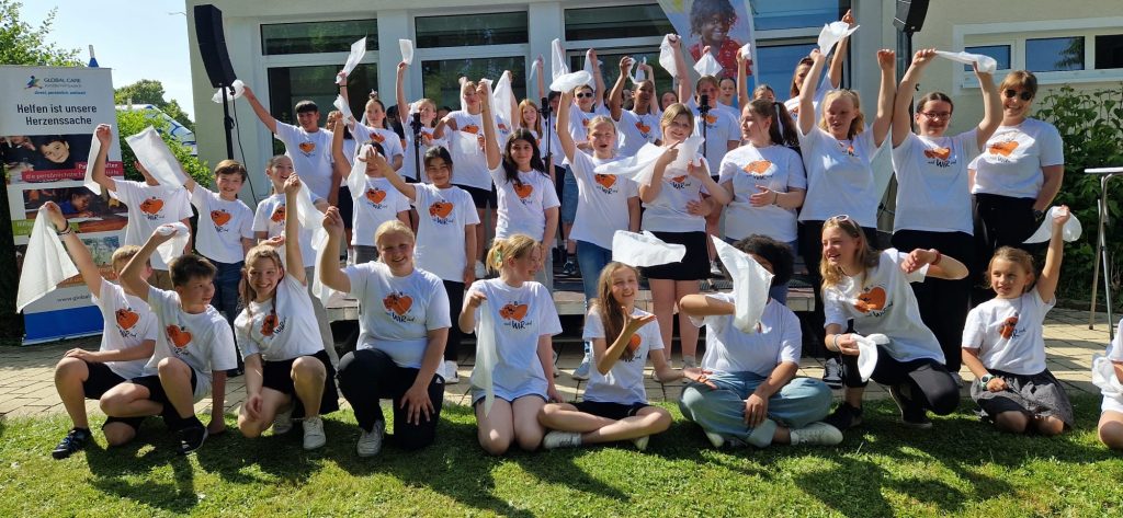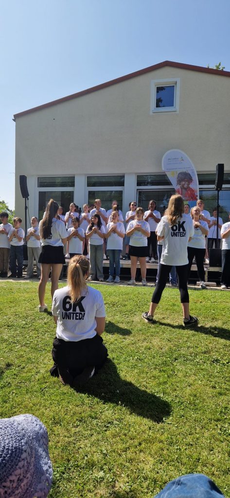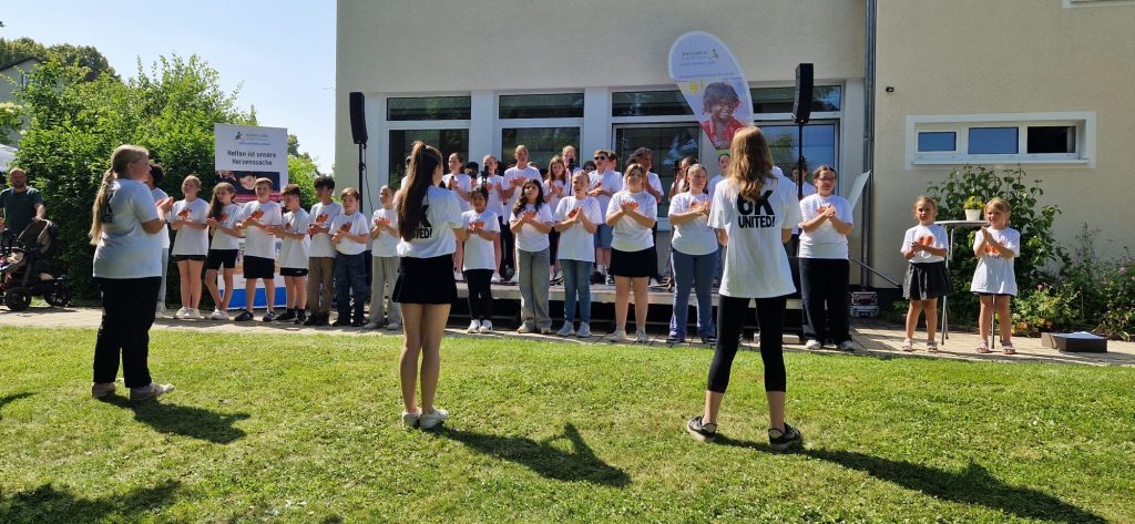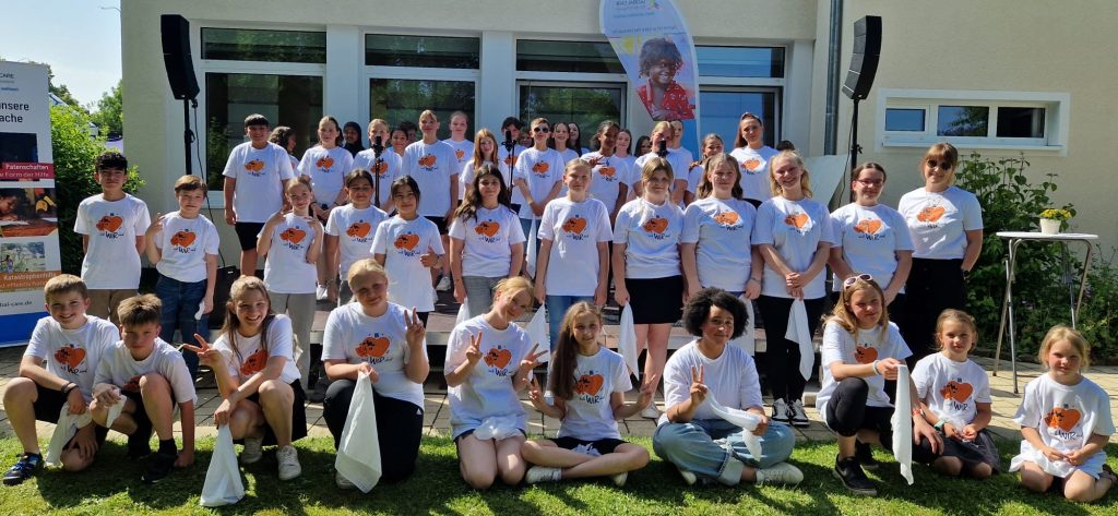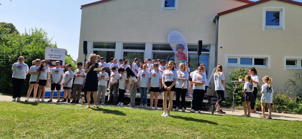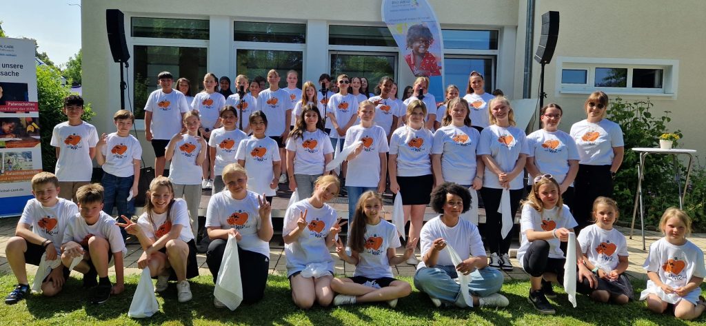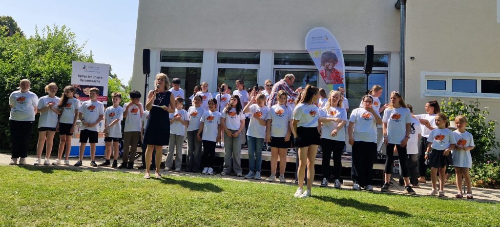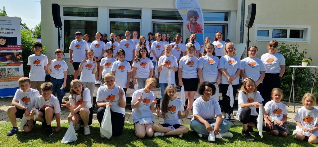 Über dreißig Grad, blauer Himmel, gute Laune – da fehlt nur noch gute Musik. Dafür sorgte heute der Chor der AFS unter der Leitung von Frau Smith und Frau Kellermann im Garten des Kinderhilfswerkes Global Care in Fritzlar. Mit Liedern aus dem Chor-Projekt, welches wieder am 26.6. in Hannover mit dem Chor der AFS stattfindet, unterhielten die knapp 40 Kinder das Publikum.