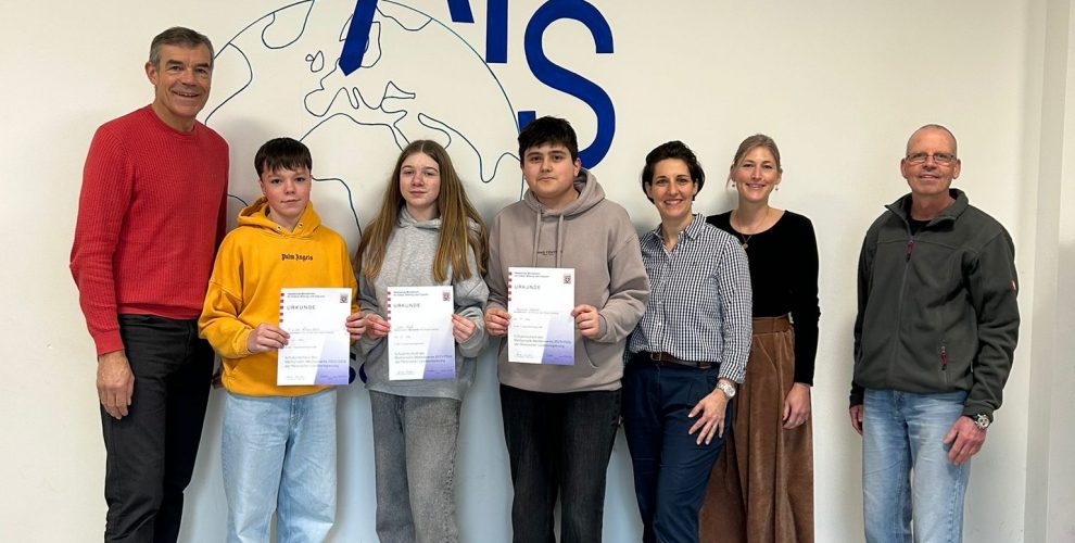 Den ersten Platz der Hauptschule erreichte Alipanah Gafarov aus der Klasse 8d, der zusammen mit seinem Mathelehrer Herrn Appel geehrt wurde.
