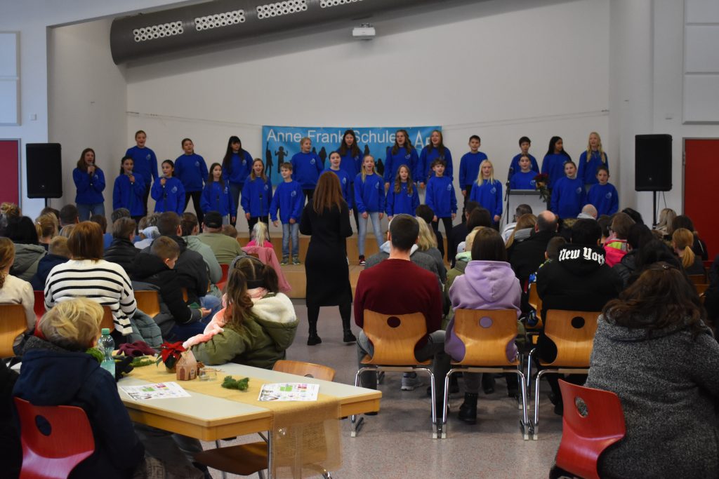 So auch in diesem Jahr. Die Schülerinnen und Schüler und die Eltern wurden in der Mensa der AFS durch Frau Langmann, Schulleiterin der Anne-Frank-Schule, sowie Herrn Klink, den stellvertretenden Schulleiter, begrüßt. Daraufhin stellten sich der große Chor sowie die Theater AG aus dem musisch-ästhetischen Band mit kleinen Beiträgen vor.